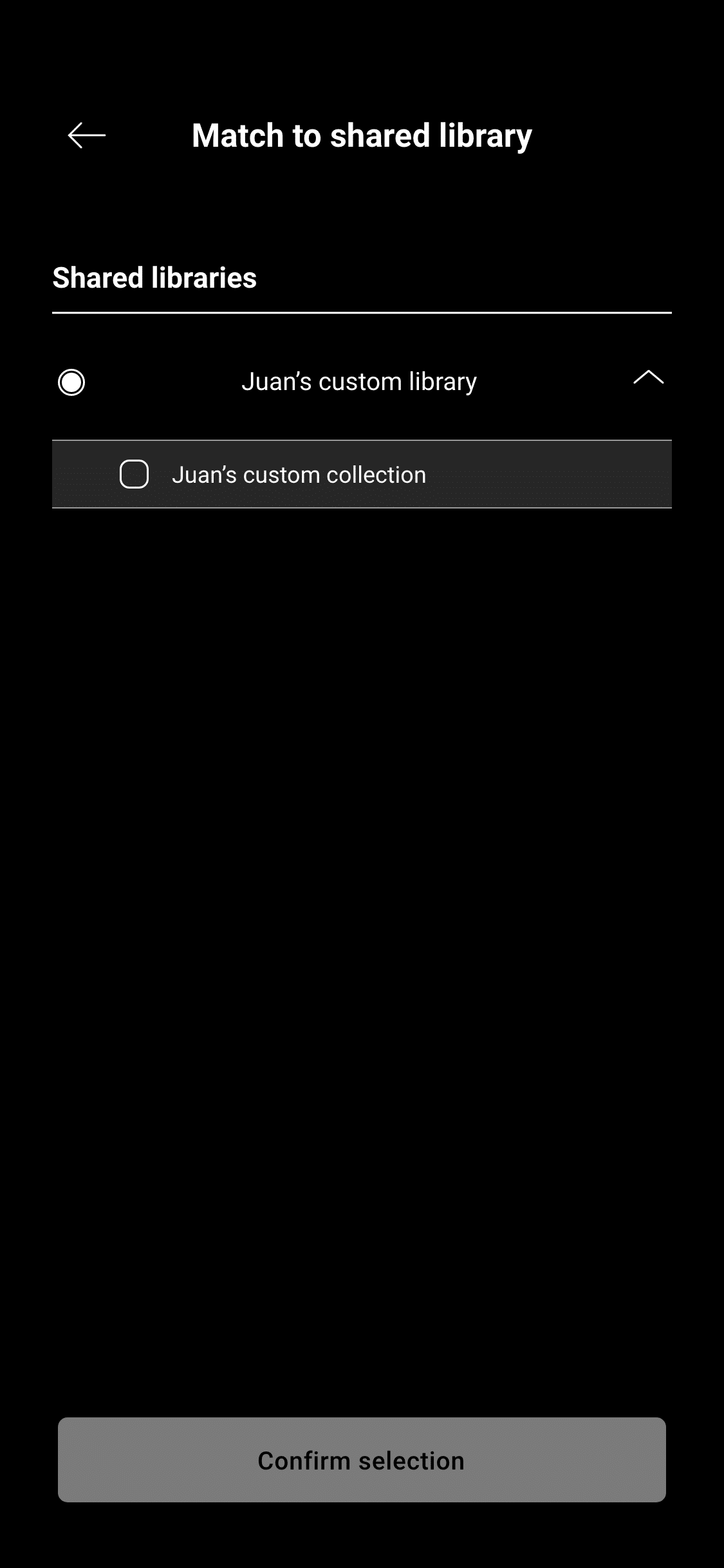 Then select which shared library and collection you'd like to match to.