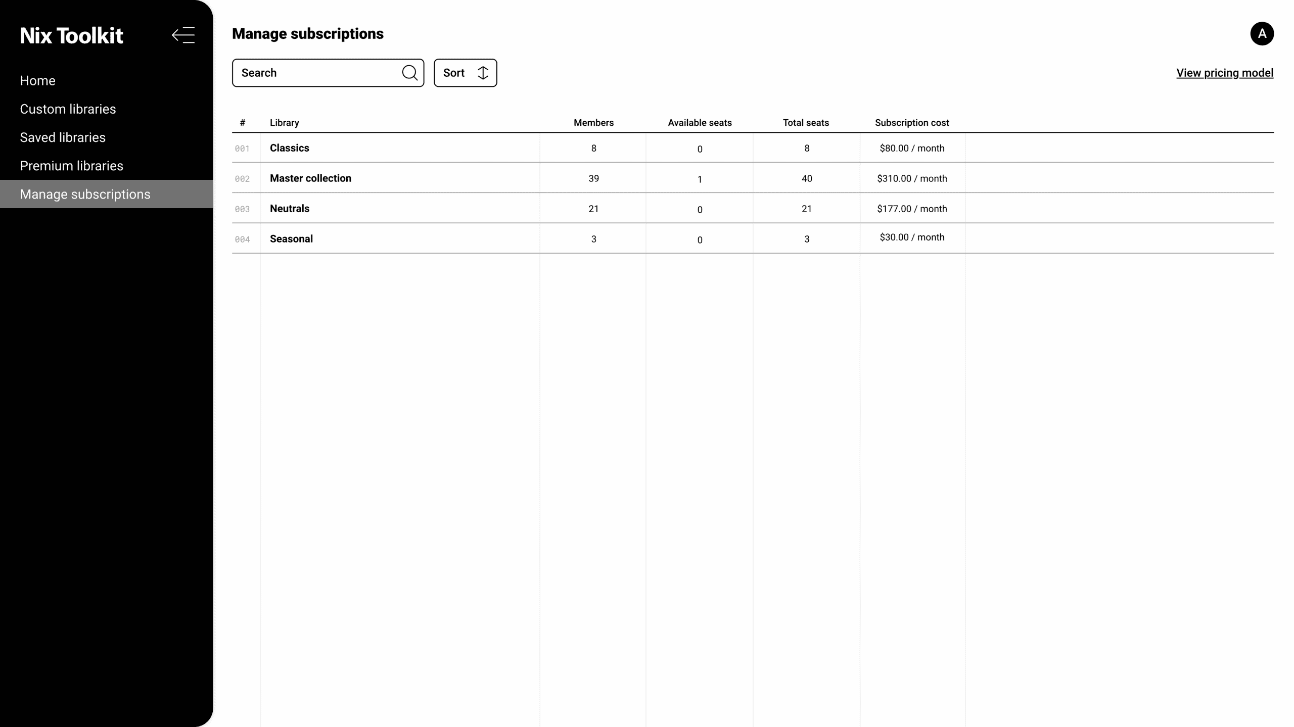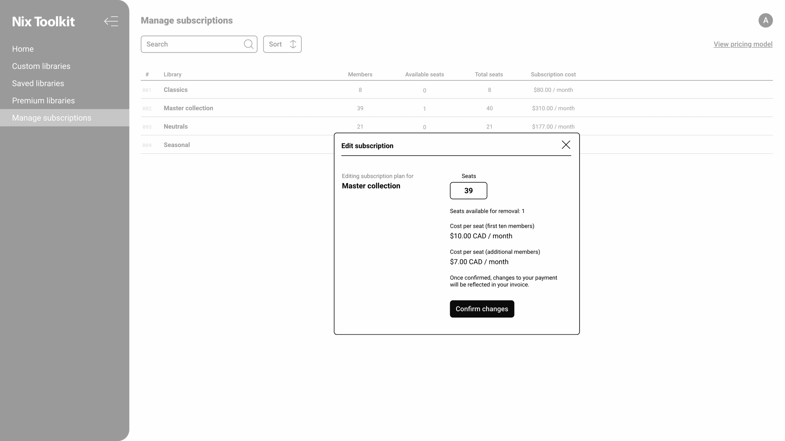 Pricing model per library